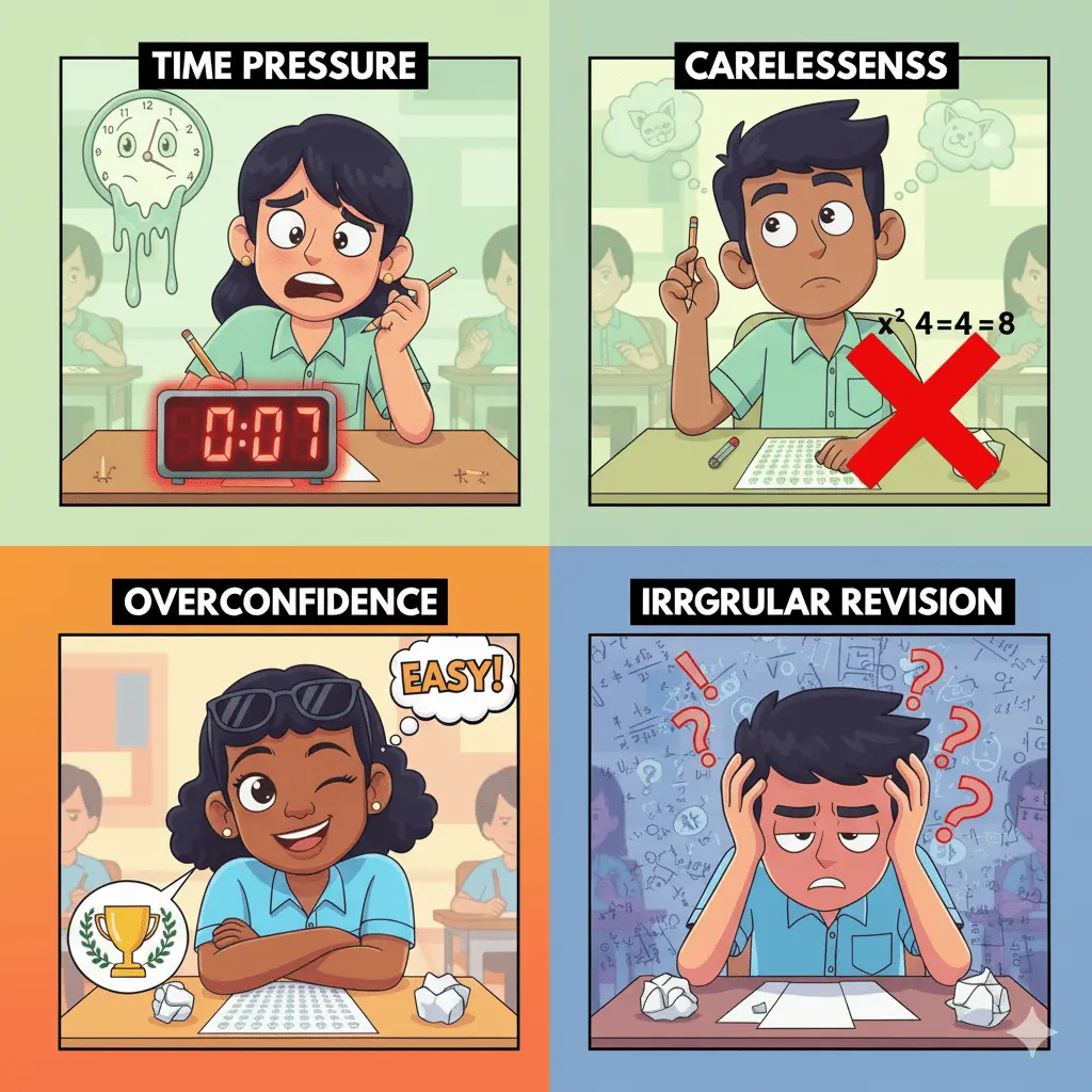 - Anxiety and nervousness during the paper can lead to mistakes and passive confusion.