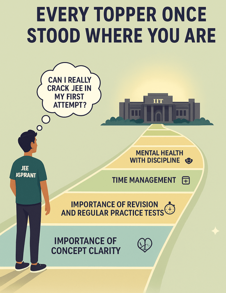 Turn your first JEE attempt into a success story! Every JEE toper sitting in the IITs and NITs once started with the same uncertainty and confusion. Cracking JEE Main in the first attempt is definitely possible. It is possible not only through hard work but smart work. What sets toppers apart is the right strategy and mindset driven by the right guidance. Keeping the syllabus handy, regularly monitoring the mock progress, and a disciplined routine will prove to help crack JEE Main in the first attempt.