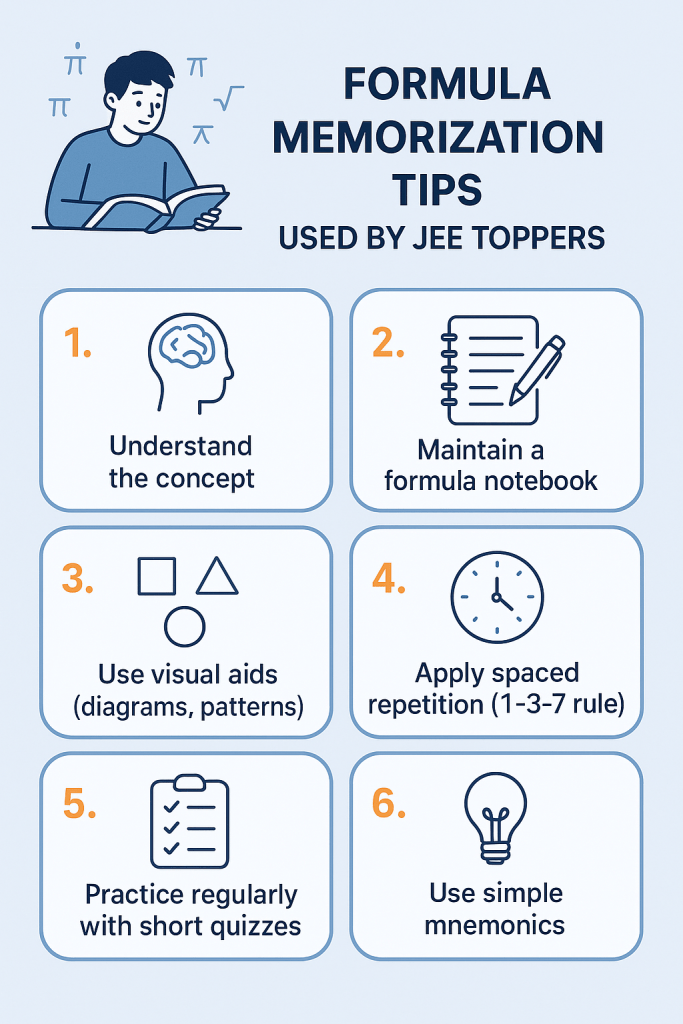 Toppers use certain tricks when it comes to memorising formulas in Physics. Keeping a separate notebook for each topic-wise formula. Revising them using flashcards at regular time periods. Like once every week. And practising numericals for mixed topics for better retention.