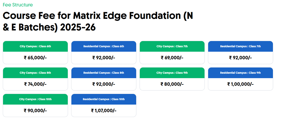 Matrix Academy Momentum is a specially designed 2-year integrated program for 11th-class students. 11th class is considered a crucial stage to prepare for advanced-level NEET preparation, where this program offers in-depth subject knowledge with strategic learning techniques, making it a perfect blend for NEET aspirants aiming to perform well in both school and the NEET exam. The course fee is very low in comparison with others, where a detailed description of the annual fee of this program is as follows-
